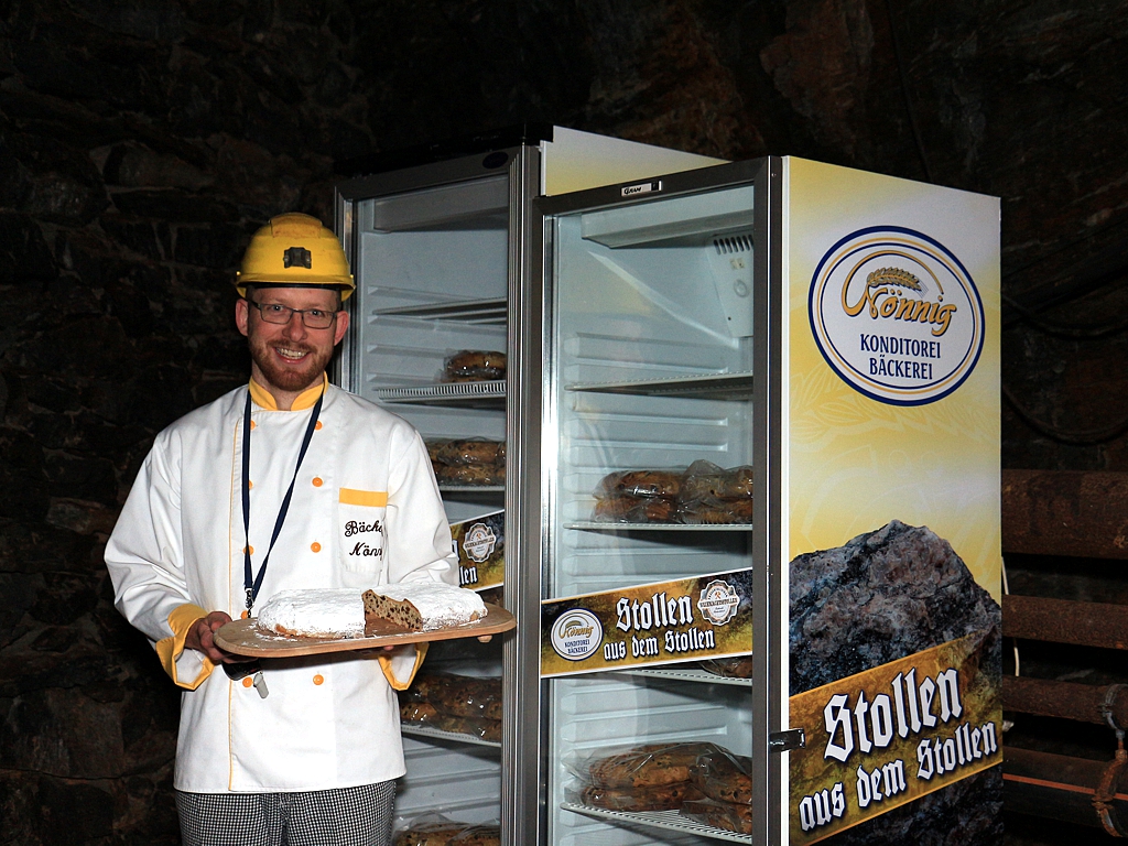 Die Weihnachtszeit rückt immer näher und die Weihnachtsbäckerei hat Hochkonjunktur. Neu in diesem Jahr sind die "Stollen aus dem Stollen" der Bäckerei Nönnig. Mit dem Kauf dieses in der Zinngrube in Ehrenfriedersdorf gereiften Weihnachtsstollens wird gleichzeitig der Erhalt des Besucherbergwerks unterstützt. Meine Aufgabe war die Gestaltung eines Grunddesigns und die Realisierung auf verschiedenen Werbeträgern, unter anderem der Kühlschrankbeschriftung und der Banderole.