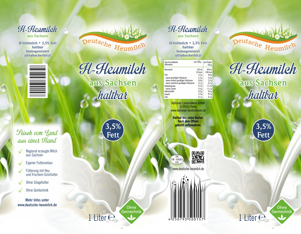 Nach vielen "äußeren" Werbemaßnahmen für die Kohrener Landmolkerei in den letzten Monaten ging es jetzt ans Eingemachte, besser gesagt ans Abgefüllte. Die Anlagen laufen und die Produktion der verschiedenen Milchsorten beginnt. Für die PET-Flaschen, in welchen die Milch auf den Markt kommt, entwarf ich das Design der Sleeves - das sind die Folieschläuche welche nach der Abfüllung über die Flaschen gezogen und geschrumpft werden. Zunächst werden 4 Milch- und 4 Heumilchprodukte in 1-Liter-Flaschen produziert. Besondere Zustimmung fand bei allen die individuelle Gestaltung des EAN-Codes.