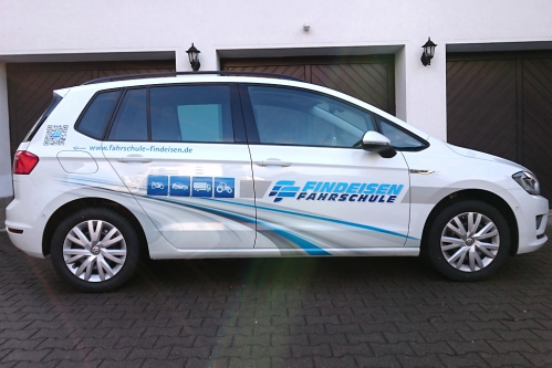Die Fahrschule Findeisen erweitert ihren Fuhrpark mit einem Golf Sportsvan. Auch dafür übernahmen wir wieder die Beschriftung im mittlerweile überall auf den Straßen bekannten Design. Nach VW Tiguan und Audi A3 wurde die Beschriftung nunmehr auf das dritte Fahrzeugmodell angepasst.